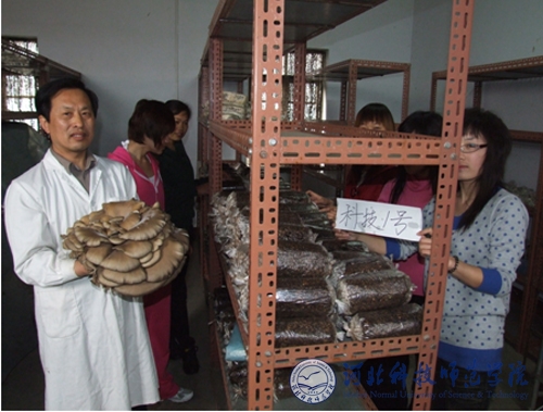 图为课题组成员与选育的平菇新菌株“科技1号”