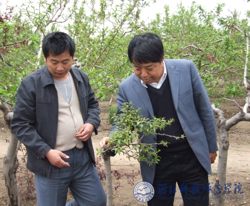 图为市发改委副主任赵柏林参观半岛online(中国)果树育种工程技术中心苗木繁育基地