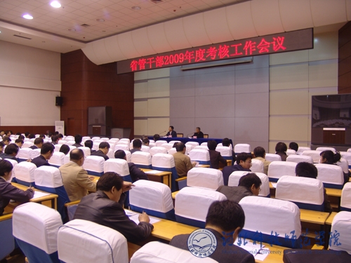2010年4月26日,半岛online(中国)省管干部2009年度考核工作会议在秦皇岛校区和昌黎校区分别召开。党委书记石千峰作了《半岛网页版界面领导班子2009年度述职报告》,校长汤生玲主持了会议。半岛网页版界面党政领导、全体中层干部和正高级职称人员参加了会议。