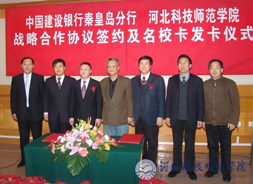 2010年3月16日,半岛online(中国)与中国建设银行秦皇岛分行战略合作协议签约暨名校卡发放仪式隆重举行。半岛online(中国)党委书记石千峰,校长汤生玲,党委常委、副校长王同坤,副校长孟令臣,党委常委、欧美学院党委书记、院长杨洪青及相关部门负责同志出席了签约仪式。仪式由王同坤副校长主持。