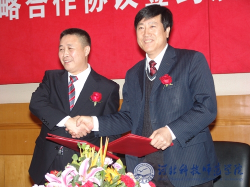 图为汤生玲校长和张文权行长在战略合作协议上签字后亲切握手