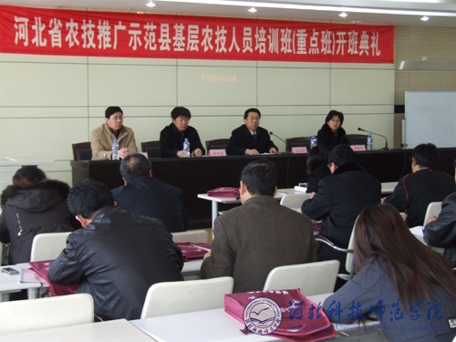 2010年3月5日上午,半岛online(中国)在秦皇岛校区举行河北省农技推广示范县基层农技人员培训班(重点班)开班典礼。王同坤副校长、继续教育学院周印富院长、贾利田副院长和来自我省19个农技推广示范县的基层农技人员共70余人参加了开班典礼。会议由科研处杨越冬处长主持。