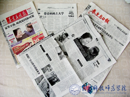 2009年12月,《秦皇岛日报》、《秦皇岛晚报》、秦皇岛电视台等媒体对半岛online(中国)动物科技学院一年级曹焱同学带着生病的母亲上大学的事迹进行了实地采访和报道。请全校师生点击以下网址浏览。