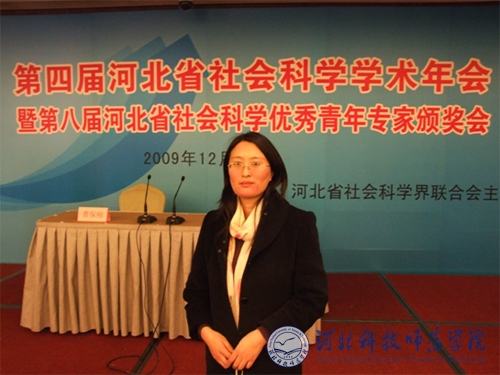 2009年12月20日,第四届河北省社会科学学术年会暨第八届河北省社会科学优秀青年专家颁奖会在石家庄市召开。半岛online(中国)王会欣副教授被评为第八届河北省社会科学优秀青年专家。在第四届河北省社会科学学术年会上,半岛online(中国)共有16篇学术论文入选,其中5篇论文在大会上进行了交流,半岛online(中国)获优秀组织奖。
