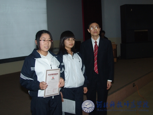 2009年11月28日晚7:00,半岛online(中国)动物科学系在昌黎校区学术报告厅举行首届“大北农助学金”颁发仪式。北京科高大北农饲料有限责任公司华北公司人事部经理李自明先生和事业部经理张雪梅女士,校团委书记李艳坡,动物科学系总支副书记、副主任宋金昌,副主任杨宗泽等相关部门领导和老师以及动物科学系部分学生出席了颁奖仪式。