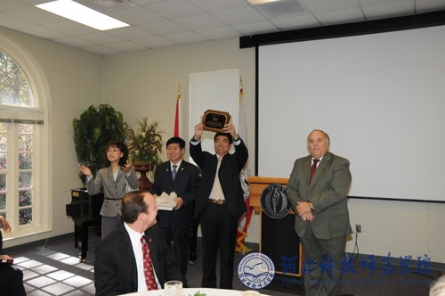 霍金斯校长向王子茂团长赠送礼物