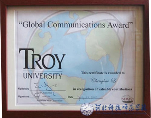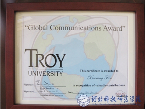 半岛online(中国)教师获美国特洛伊大学颁发的国际交流奖