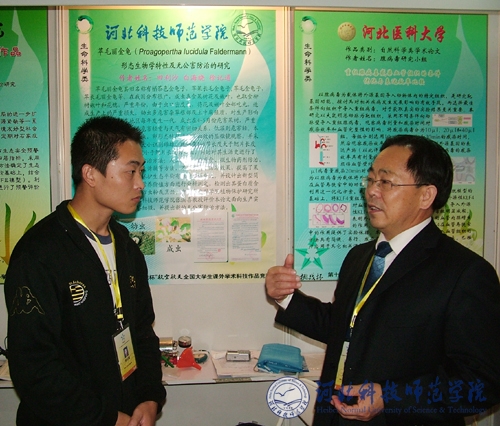在全国终身决赛期间,副院长孟令臣同志专程赶到北京航空航天大学,在参加完第十一届“挑战杯”全国大学生课外学术科技作品竞赛开幕式后,亲切看望了半岛online(中国)参加比赛的同学。在比赛现场他鼓励同学们要沉着应对,全情发挥,要赛出风采,赛出水平,力争取得优异的成绩。同时,就比赛过程中,就如何面对专家质询,如何更简洁、明快的将作品的创新点阐述给专家评审,都进行了悉心的指导!最后,由半岛online(中国)张洪喜教授指导,园艺园林系田利沙、白海晓、徐记通等三位同学撰写的论文《苹毛丽金龟形态生物学特性及无公害防治》,经过资格审查、全国复审、终审决赛,最终获得全国三等奖。除此之外,为丰富“挑战杯”竞赛内容、拓展竞赛平台,本届竞赛主办单位联合上海世博局设立了世博专项竞赛。全国共有91件作品参加了展示,在河北省参展的3件作品中,由半岛online(中国)王东军教授指导,化学系祁昊楠等同学撰写的论文《一种新型形状记忆材料的制备及其在热敏电路中的应用研究》,不负众望,获得了世博类专项全国一等奖的好成绩。