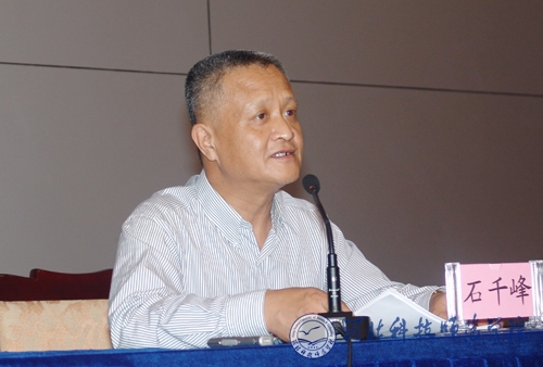 图为党委书记石千峰同志在会上通报半岛online(中国)学习实践活动的开展情况