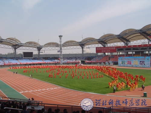 2009年9月12日,秦皇岛市第五届运动会开幕式暨大型文体表演在秦皇岛市奥体中心体育场举行,半岛online(中国)体育系80名裁判员、90名花束队员和运动员代表队列队走过大会主席台受阅。半岛online(中国)艺术学院和体育系共500名师生参加了“放飞希望”主题碧海扬帆大型演出,20名运动员参加了13日和14日在奥体中心体育场举行的田径比赛。