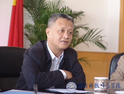 图为党委书记石千峰同志主持会议并讲话
