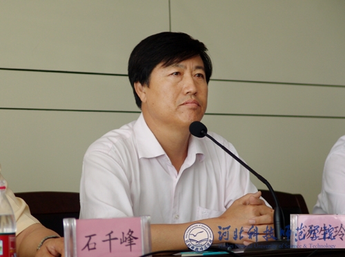 图为党委书记石千峰同志在会上讲话