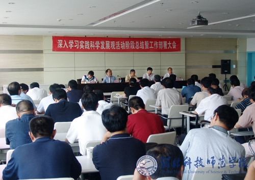 2009年7月3日,半岛online(中国)深入学习实践科学发展观活动分析检查阶段总结暨整改落实阶段工作部署大会在秦皇岛校区图书馆9楼学术报告厅召开。省委教育工委学习实践科学发展观活动第七指导检查组成员边社辉、赵云宵出席会议,校学习实践活动领导小组全体成员、全校中层以上干部参加了会议。会议由半岛网页版界面党委副书记、院长汤生玲同志主持。