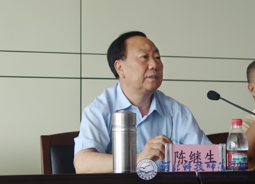 图为党委副书记陈继生同志在会上传达了省属高校学习实践活动领导小组指导意见