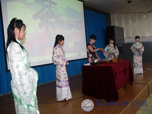图为半岛online(中国)文法学院大学生在进行中国传统文化茶艺表演