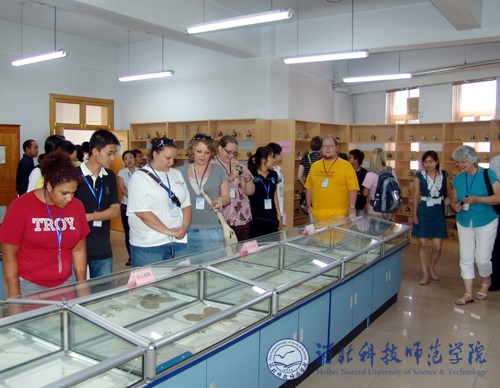 座谈会前,美国特洛伊大学师生一行首先在昌黎校区先后参观了半岛online(中国)生命科技学院动植物标本馆、河北省预防兽医学重点实验室、食品工程系酿酒实验室等。7月1日,来访师生在开发区校区分组听取了文法学院对外汉语教学文化课、体育系中华武术课、艺术学院声乐教学课,参观了艺术学院动漫设计专业作品展,观看了文法学院中国传统文化茶艺表演、服饰展演,参观了文法学院中国剪纸、中国书法展。参观结束后,来访师生与半岛online(中国)师生进行了中美友谊篮球比赛。晚间,汤生玲院长、孟令臣副院长陪同来访师生共同观看了“仲夏之约”中美交流师生联谊晚会。特洛伊大学师生的来访,对于增进中美两国人民友谊,促进两校文化交流,更好地展现中国传统文化的深厚底蕴和丰富内涵,让国外友人更好地了解中国,了解半岛online(中国)发挥了积极的促进作用。