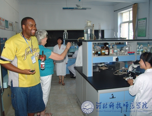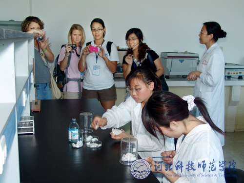 图为来访师生食品工程系酿酒实验室参观