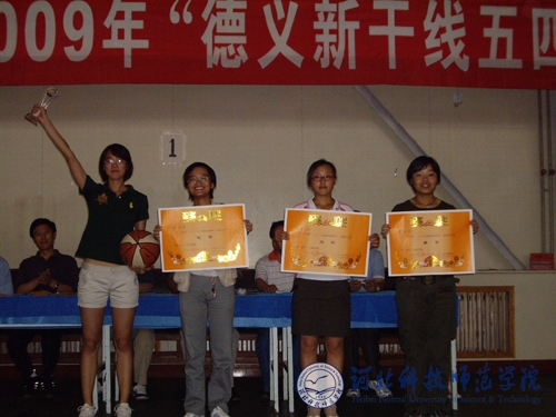 2009年6月4日下午,由校团委、体育系主办,校学生会承办的第五届“德义新干线五四杯”篮球赛闭幕式于在昌黎校区体育馆隆重举行。学院副院长孟令臣出席闭幕式并致辞,校区办主任刘卫东,食品工程系党总支书记、主任高海生,生命科技学院院长东方阳,机电工程学院党委书记冯瑞银,园艺园林系党总支副书记、副主任李佩忠,体育系副主任李会增及动物科学系学工办和校团委相关教师参加了闭幕式。