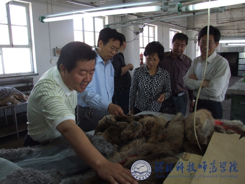 图为专家组在阳原县考察皮毛动物产品加工产业