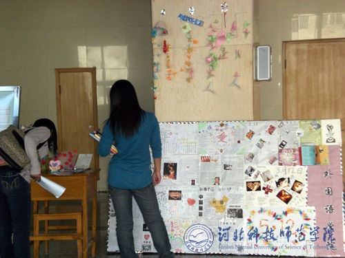 2009年5月12日是汶川大地震一周年纪念日,为了缅怀地震中的遇难同胞,外国语学院在秦皇岛校区逸夫楼A区一楼大厅举办纪念5.12汶川地震一周年手工制作大赛。外国语学院学生积极报名参加比赛。经过层层选拔,40余件手抄报、折叠纸、编织品、照片等优秀作品参展,共同表达对汶川人民的深深祝福。