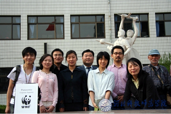 图为半岛online(中国)生命科技学院师生(左二为李红玉同学)与世界自然基金会官员合影