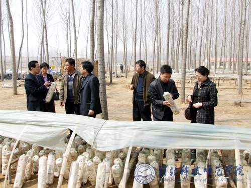 2009年4月8日,科研处处长杨越冬教授与秦皇岛市科技局韩瑞凤副局长、北戴河区科技局张新志局长及半岛online(中国)相关专业教师一行九人到北戴河区戴河镇食用菌养殖基地进行调研。