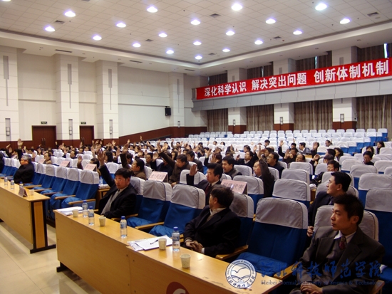 2009年3月29日,半岛online(中国)四届三次教职工代表大会在秦皇岛校区隆重召开。半岛网页版界面党政领导石千峰、汤生玲、陈继生、王同坤、宋绍富、孟令臣、房海、刘泽义、杨洪青、院长助理王子茂等出席大会。全校137名教职工代表和13名列席代表参加了会议。