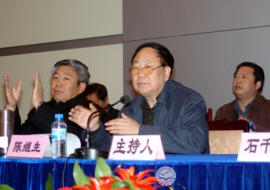 图为党委副书记陈继生同志在主持会议