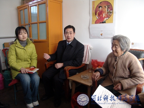 2009年1月14日,河北省教育厅厅长刘教民、秦皇岛市副市长刘辰彦、省教育厅人事处处长王廷山、省教育厅办公室主任王运峰、秦皇岛市教育局局长王桂鹏等领导到我院昌黎校区亲切慰问付华母女。我院院长汤生玲、党委副书记陈继生等陪同慰问。