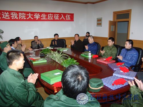 图为院领导对我院10名大学生应征入伍表示祝贺
