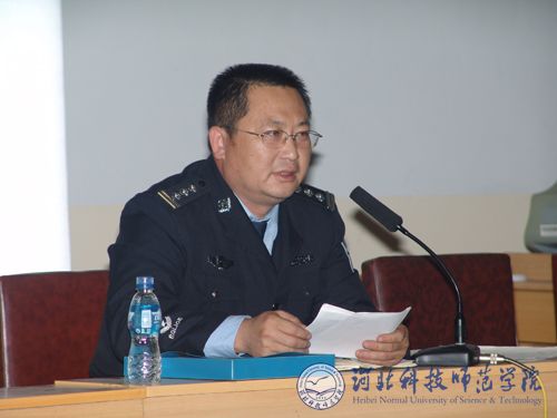 图为昌黎县公安局国保大队大队长高接力在作报告