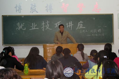 2008年10月23日下午15:00,中文系在秦皇岛校区逸夫楼501教室举办就业知识讲座。系党总支书记刘朝晖主讲,中文系学工办、团总支、各班主任、辅导员及秦皇岛校区全体2009届毕业生聆听了讲座。