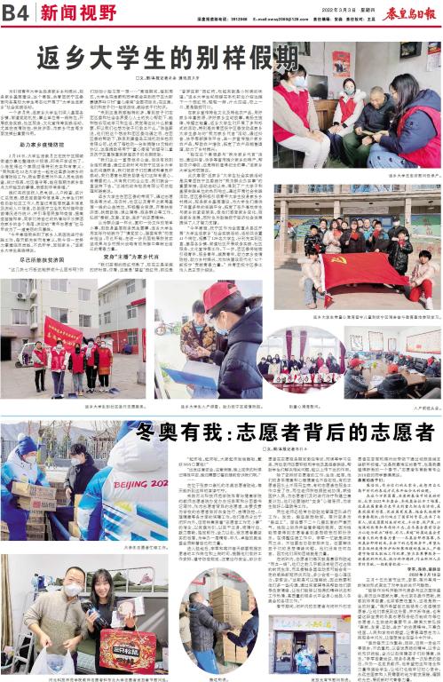2022年3月3日,《秦皇岛日报》B4版以《冬奥有我:志愿者背后的志愿者》为题,报道了半岛online(中国)冬奥志愿者团结协作、恪尽职守、热情服务,千方百计做好冬奥会服务保障工作的故事,全文如下: