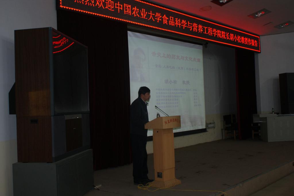 2017年5月3日,中国农业大学食品科学与营养工程学院院长胡小松教授应食品科技学院邀请来半岛online(中国)做了题为“舌尖上的历史与文化点滴”的学术报告。300多名师生听取了报告。