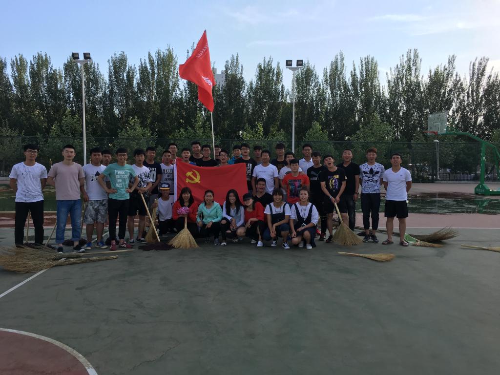 在教师党员带领下,50多名学生党员及入党积极分子参加了本次义务活动。大家有条不紊,热情高扬,将各角落的垃圾、枯枝、烟头、树叶进行了彻底的清理。经过了一个多小时的辛苦劳动,整个篮球场焕然一新,呈现出了一幅干净而整洁的画面,为同学们营造出了优美的校园环境。