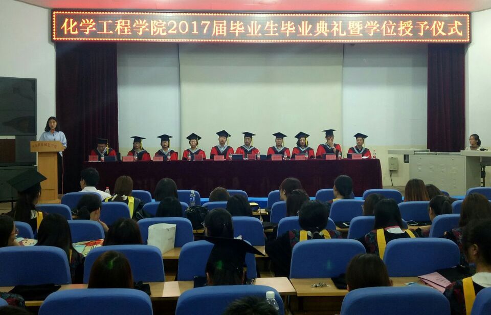 2017年6月13日8点30分,化学工程学院在昌黎校区学术报告厅举办了化学工程学院2017届毕业生学士学位授予仪式。化学工程学院负责人、学位委员会成员、教学部老师及各年级学生共350人参加。