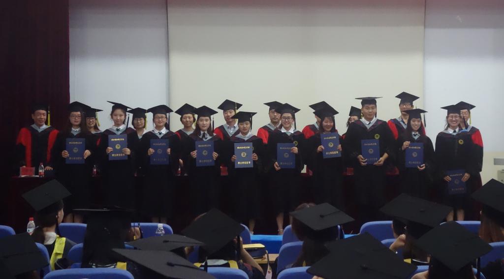 学位授予仪式在庄严的国歌声中开始,教师代表、毕业生代表与在校生代表依次上台发言,表达了对毕业生的希冀以及对在校生的勉励。随后,对优秀毕业生和优秀毕业论文获得者进行了表彰。每一位获得学位的同学身着学士服依次上台,由院领导、老师颁发学位证书、拨正流苏。