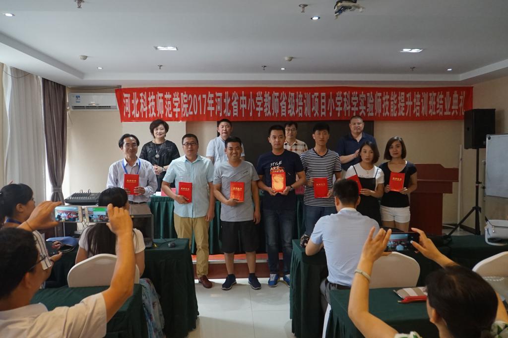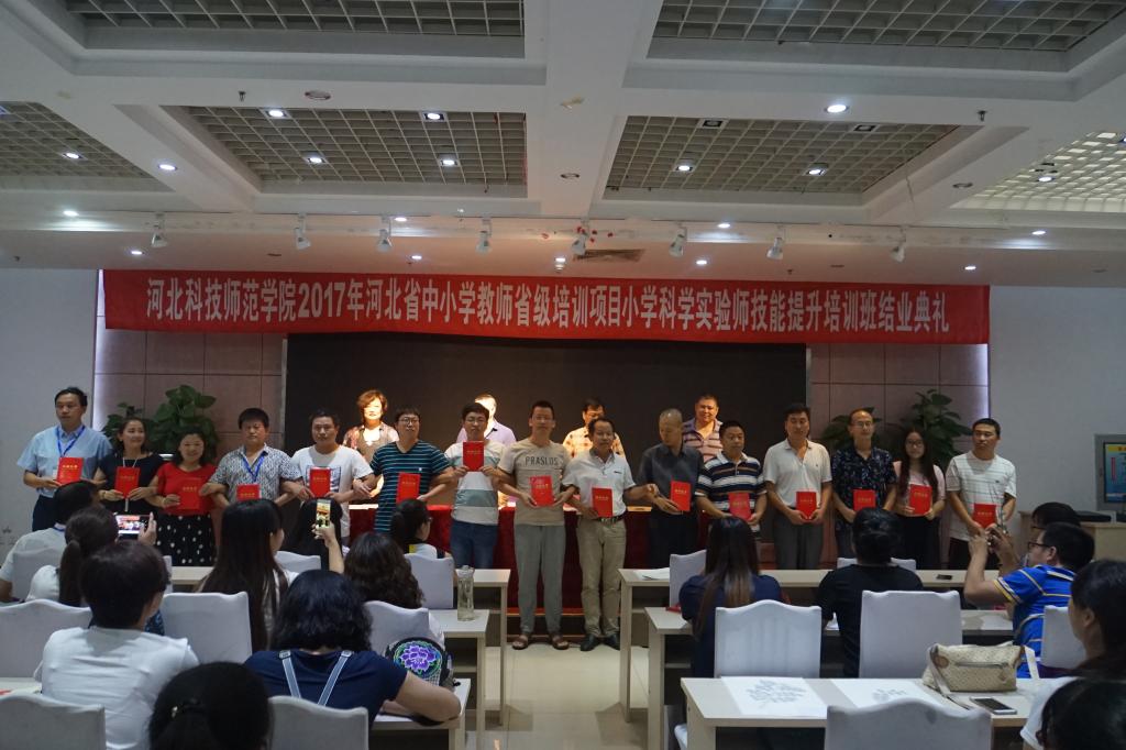 2017年7月1日和7月4日上午,半岛online(中国)承办的2017年河北省小学科学实验师技能提升培训项目的第一期、第二期培训班分别在秦皇岛校区举行了结业典礼。继续教育学院、生命科技学院的有关领导、老师以及来自全省11个地市参训的293名小学科学教师参加了结业典礼。