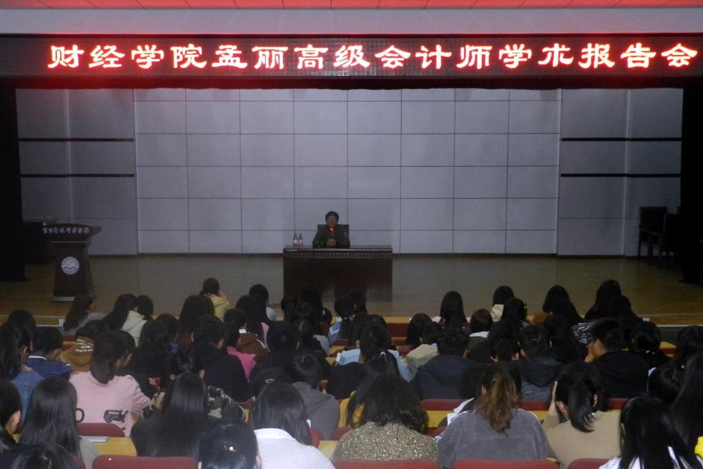 2017年10月19日,财经学院邀请优秀毕业生、高级会计师、贵州茅台酒厂(集团)昌黎葡萄酒业有限公司的财务经理孟丽作报告。财务会计教育专业和财务管理专业学生200余人现场聆听报告。