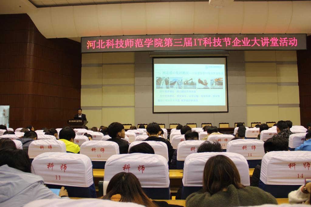 2017年10月31日下午2点,数学与信息科技学院邀请河北港口集团有限公司信息与技术中心主任侯贵宾在学术报告厅做了题为《智慧港口的建设与探索》的学术报告,学院15级计算机科技专业,14、15级物联网工程专业学生及学院计算机专业教师聆听了报告。