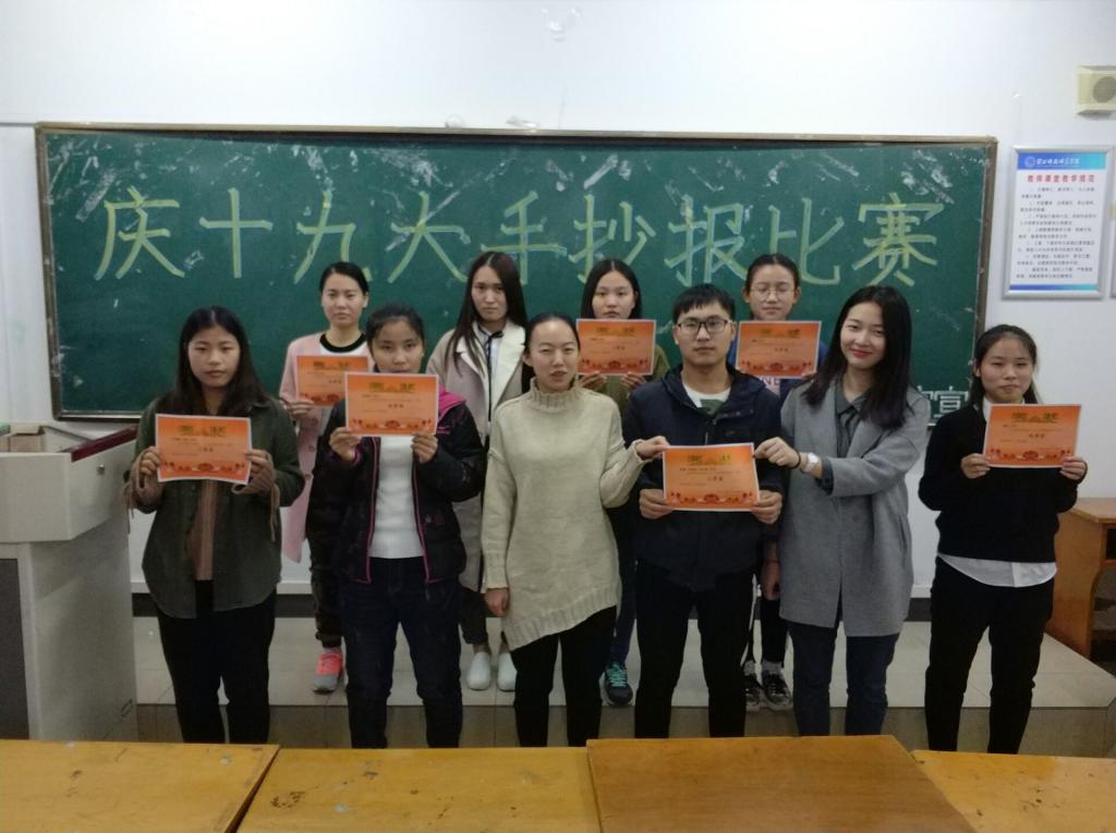 为深入学习贯彻“十九大”精神,外国语学院新生团支部于2017年10月30日晚七点半在510教室举办学习“十九大”手抄报比赛。