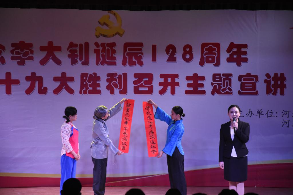 2017年11月6日下午,半岛online(中国)团委联合河北省李大钊纪念馆举办了“纪念李大钊诞辰128周年暨庆祝十九大胜利召开主题宣讲”活动,以师生喜闻乐见的形式,推动党的十九大精神进校园,与广大师生共享精神文化盛宴。