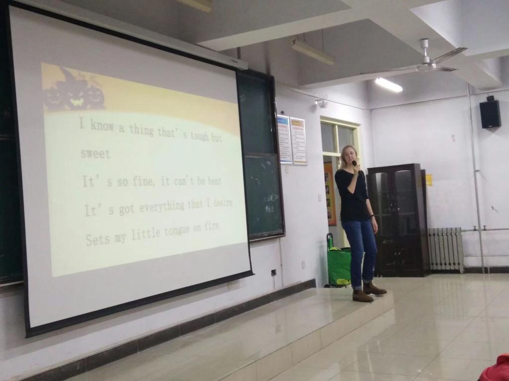 本次活动在欢快的音乐中拉开了序幕,外教Maddi通过问答与故事的形式讲述了“感恩节”的由来和习俗;外教Sam分别从感恩父母、感恩老师、感恩祖国三个方面进行了演讲。活动中掌声阵阵。