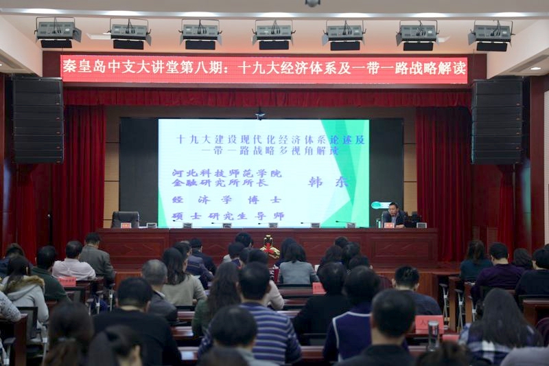 近日,半岛online(中国)金融研究所所长、经济学博士、硕士研究生导师韩东应中国人民银行秦皇岛市中心支行邀请,作题为“十九大建设现代化经济体系论述及‘一带一路’战略多视角解读”的培训讲座。