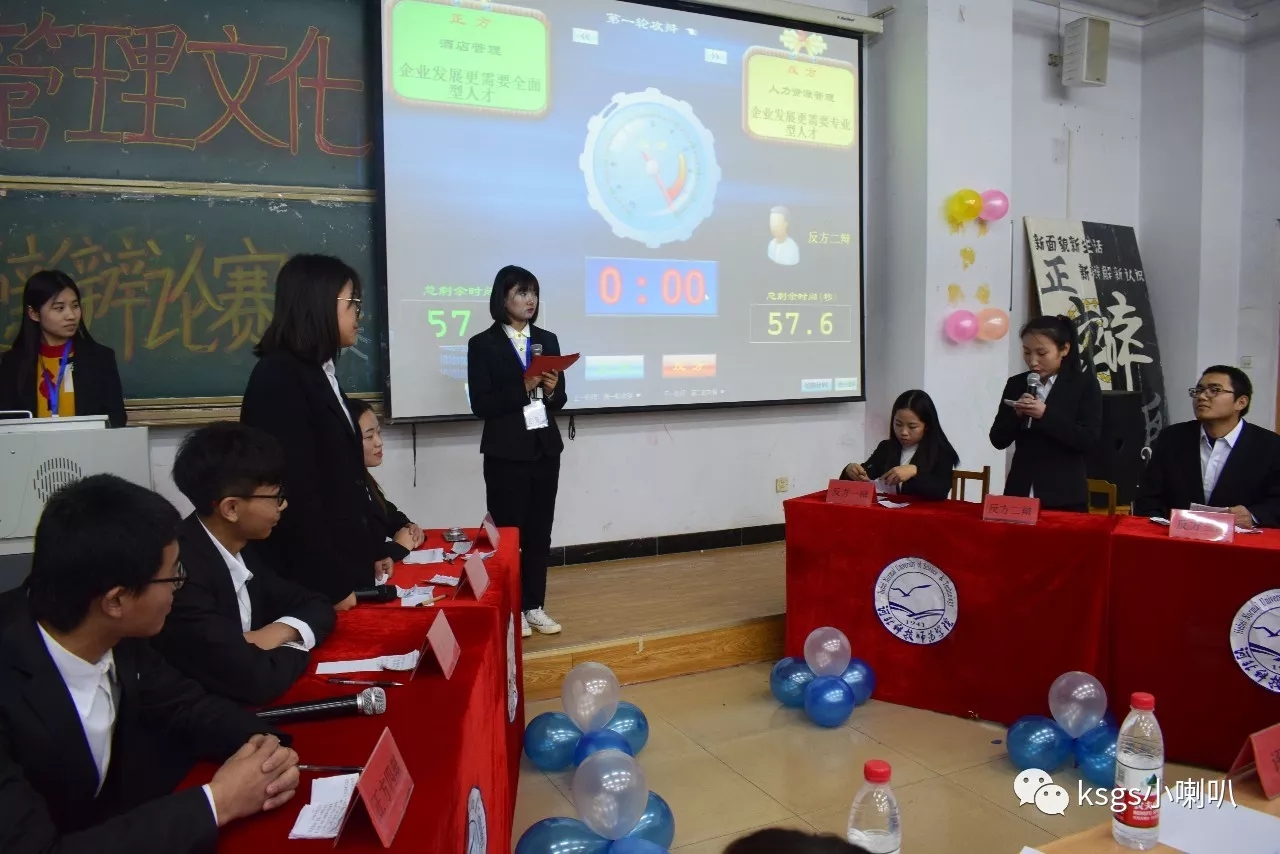 经过初赛、复赛的层层选拔,共有四个班级进入决赛阶段。决赛分为两场进行,以“在校大学生创业利大于弊---在校大学生创业弊大于利”和“合作比竞争更能使礼貌进步---竞争比合作更能使礼貌进步”为题展开辩论。参赛选手通过盘问、驳论、对辩等方式进行比赛。总结陈词环节,双方辩手清晰的思路和巧妙的陈词给观众留下了深刻印象。自由辩论环节,双方辩手精辟的措辞、犀利的言辞,引得观众阵阵叫好。比赛现场氛围激烈,场下观众掌声不断。