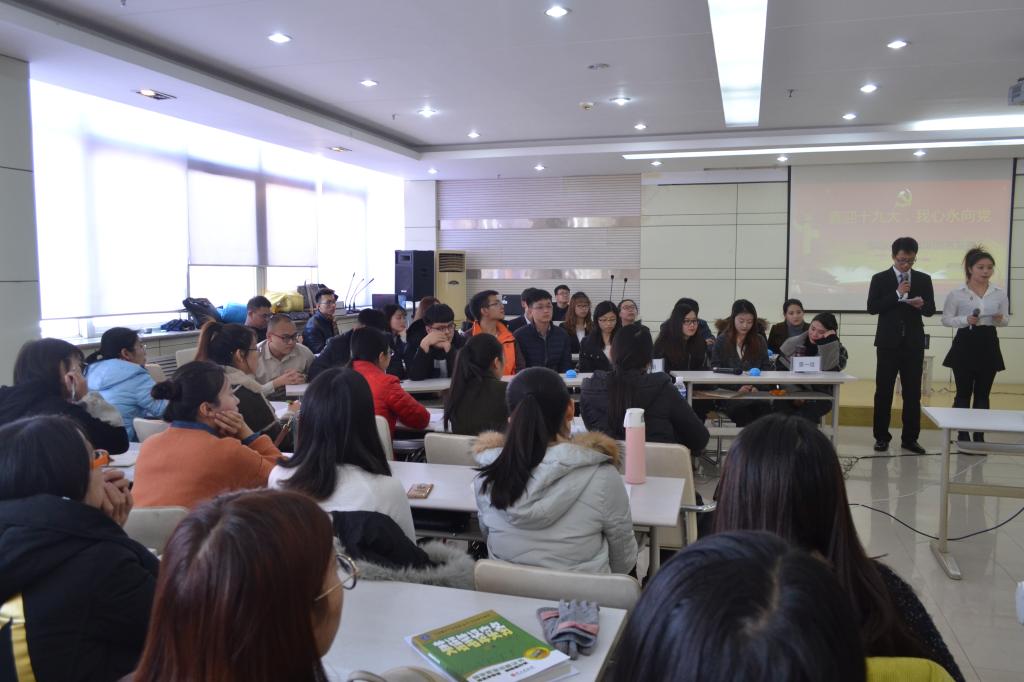 2017年11月26日,数学与信息科技学院物联网工程学生党支部邀请学院党委委员讲党课,专题解读十九大报告。学院党委委员发挥计算机专业优势用图片的形式展示十九大报告内容,以新颖独特的视角,全方位、多角度的全面解读了十九大召开的重大意义、会议主题、党在新时代的重要使命、取得的重要成果等方面内容,并要求学生党员充分发挥党员的模范带头作用,引导周围同学一同进步。