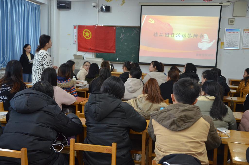 2017年12月4日教育学院在综合楼604教室举办了精品团日活动答辩评比活动,学院2017年举办过精品团日活动的团支部参加了此次答辩。各班团支书按照抽签顺序依次上台,利用制作精良的PPT,展示了各自形式丰富的活动。如学前教育16123班团支部以“青春之声,歌唱祖国”为主题举办的歌唱比赛;心理专业团支部结合微笑日和秦皇岛市创建文明城市举办的“今天微笑吧”主题团日活动;学前教育1604团支部开展的“心灵手巧,变废为宝”环保小制作团日活动;16多媒体专业记录了学子们青春模样的“大学那些事”团日活动。汇报现场观众们掌声阵阵。