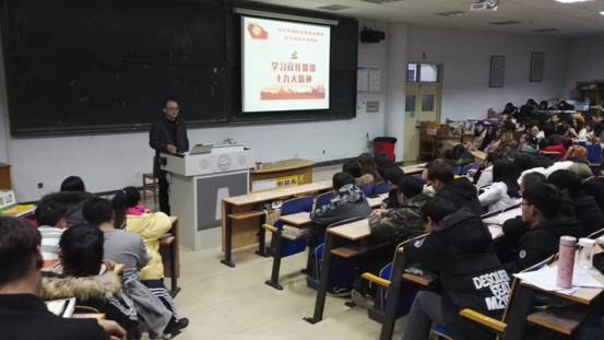 2017年12月7日下午,艺术学院200多名学生聆听了田辉老师解读十九大报告的宣讲,宣讲在开发区校区综合楼121教室举行。田老师宣讲的题目是“回溯习近平调研思想形成路径,践行新时代求真务实创新精神”。
