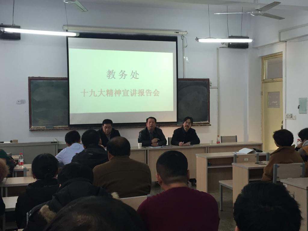 会上,教务处负责人带领全体人员回顾了十八大以来党的三中至六中全会基本任务,并对“四个全面”战略布局和“五位一体”总体布局进行解读。同时,结合“8个明确,14个坚持”高度概括了十九大报告精神主旨,并结合教务处工作实际,深入浅出地对十九大报告进行解析。