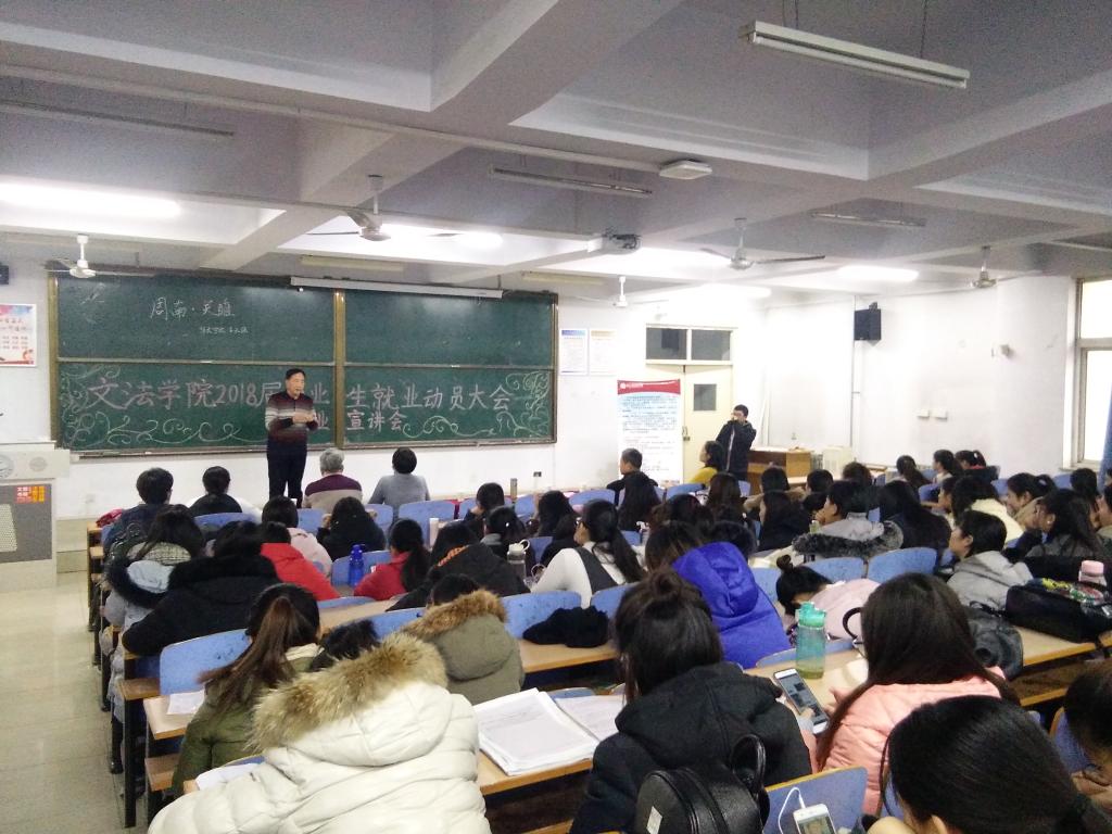 为帮助毕业生了解就业形势,引导学生树立正确的就业观,促进毕业生充分就业,2017年12月28日下午2点,文法学院在综合楼712教室举行了2018届毕业生就业动员大会暨企业宣讲会,秦皇岛华文半岛网页版界面和保定贺阳半岛网页版界面的负责人、文法学院学工办负责老师以及200多名毕业生参加了这次会议。